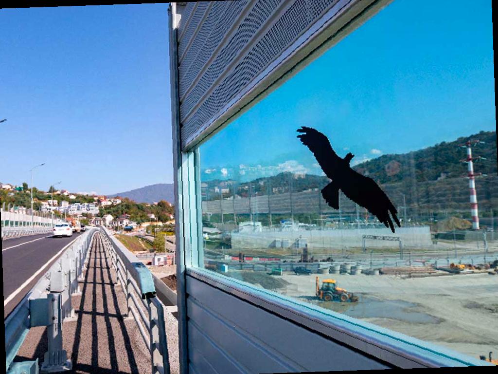 Специалисты ГК «Автодор» решили проблему столкновений птиц с прозрачными шумозащитными экранами вдоль Обхода Адлера. Они нанесли силуэты хищных птиц, таких как ястребы и совы, чтобы предостеречь мелких пернатых от опасности.