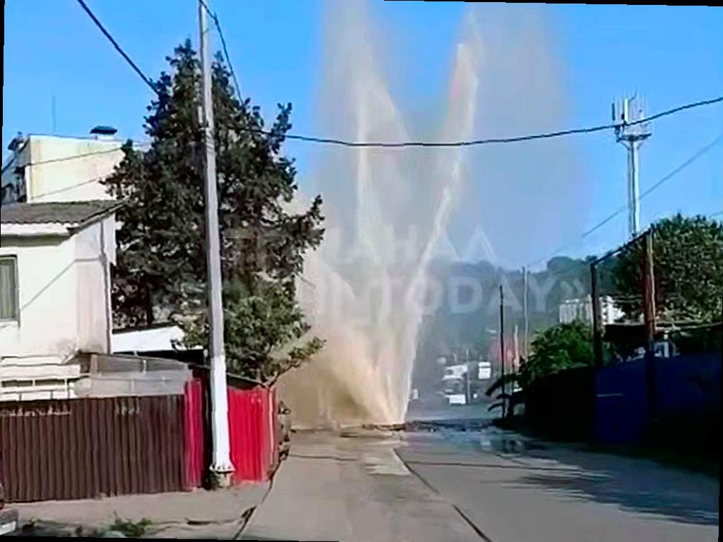 Утром 7 июня на улице Искры в Кудепсте произошел сильный прорыв водопровода. Свидетели утверждают, что фонтан достигал восьмого этажа.