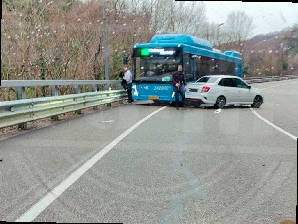 Легковушка столкнулась с автобусом на трассе в Сочи