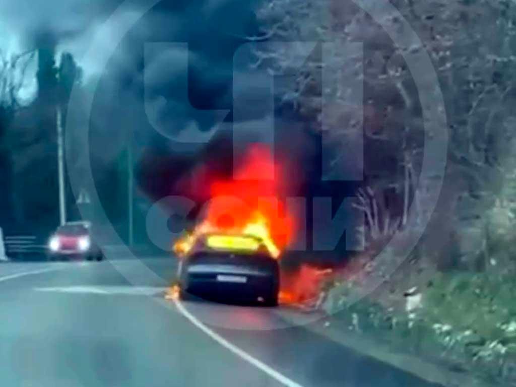 Машина загорелась на дороге в Сочи