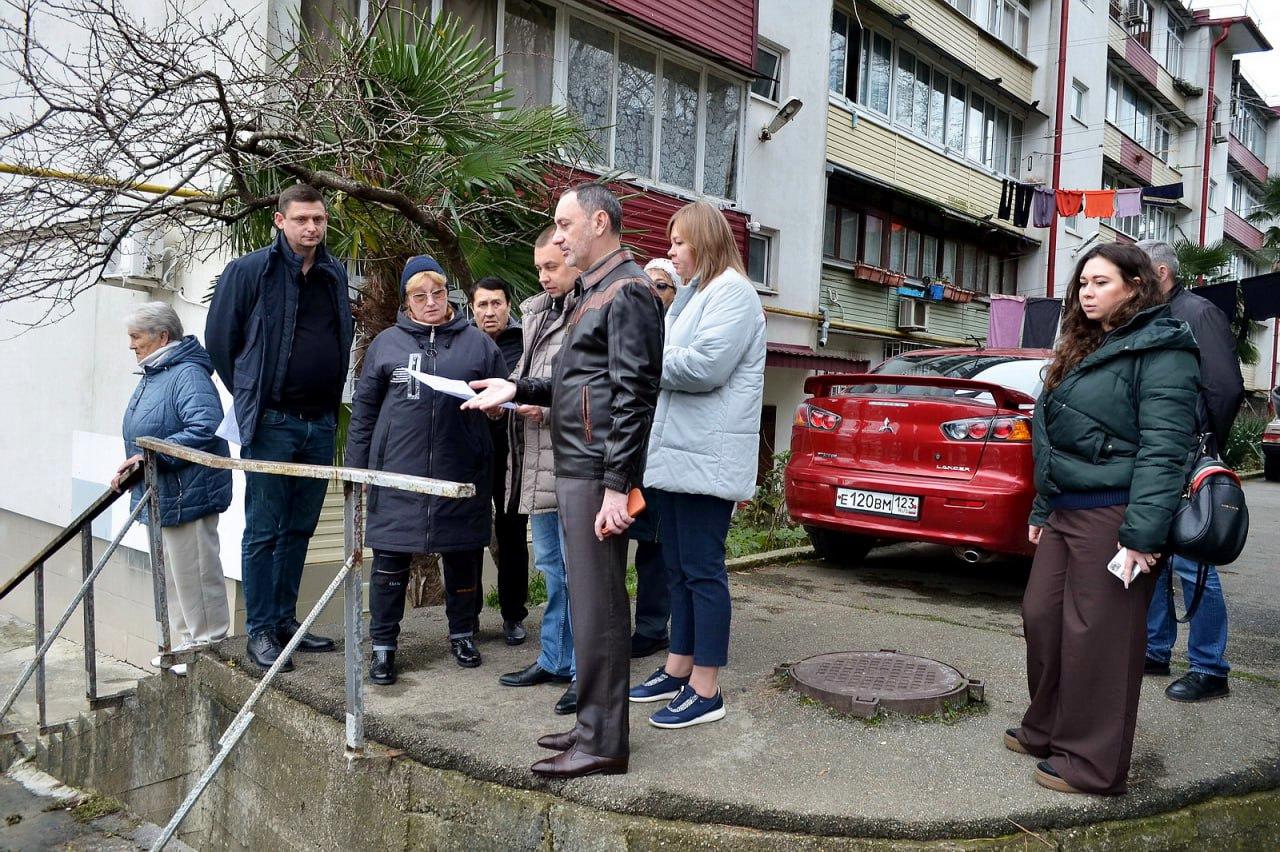 В рамках выездной проверки присутствовали первый заместитель главы администрации Центрального района Михаил Харламов, депутат Городского Собрания Сочи Роман Сидорцов, представители местных властей, специалисты управляющей компании и сами жители.