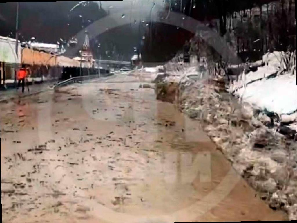 Сход селевого потока на дороге к курорту «Роза Хутор» в горном кластере Сочи