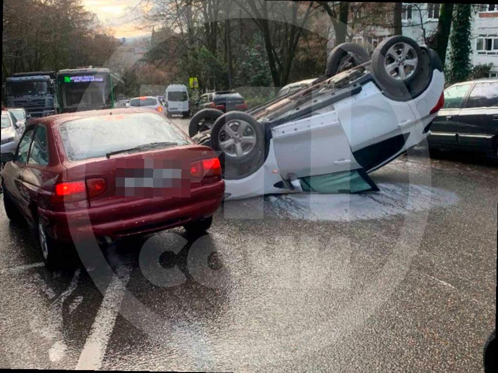 Автомобиль перекрыл проезжую часть в узком месте между припаркованными у обочины машинами. Как водителю удалось совершить такой необычный маневр, неизвестно. На данный момент нет информации о пострадавших.