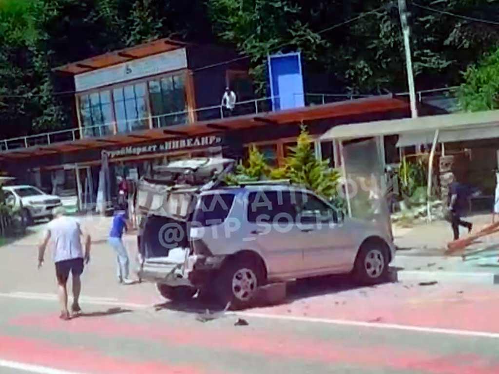 В Сочи автомобиль без водителя столкнулся с остановкой, есть пострадавшие