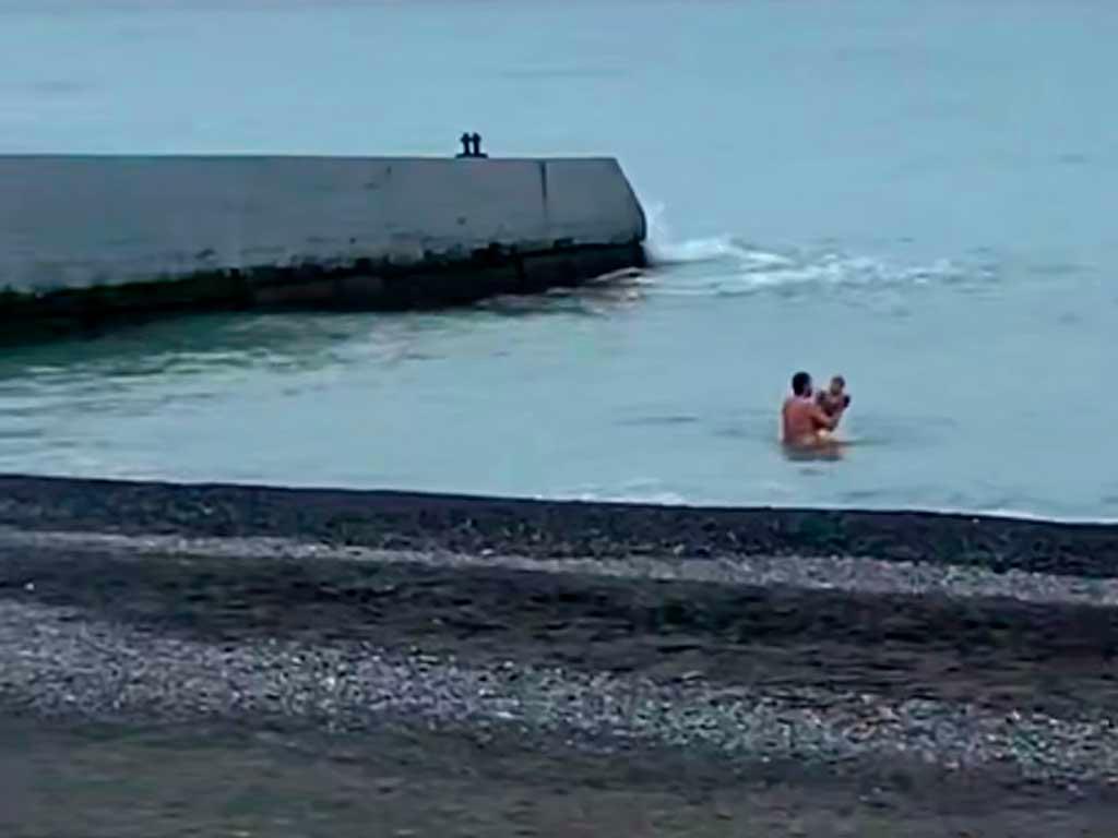 В Сочи неизвестный мужчина купал детей в зимнем море, вызвав беспокойство