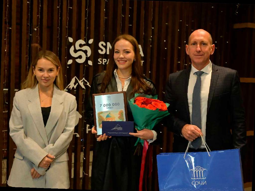 Семимиллионному гостю вручили сертификат и памятные подарки. Согласно данным городских властей, туристический поток осенью в Сочи не уступает прошлому году. Загрузка гостиниц в сентябре составила 84,2%, а в октябре — 75,8%. На новогодние каникулы курорт ожидает около 280 тысяч гостей и 200 тысяч однодневных посетителей.