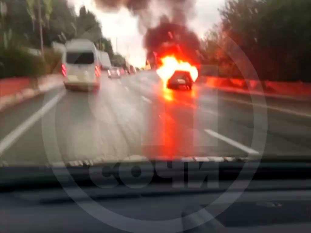 В Сочи загорелся автомобиль на трассе